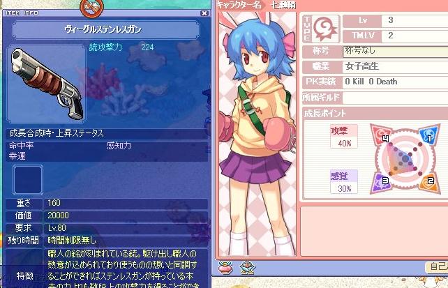 スキル関係とかはまだそこまでいじってないので、どうやってこうかなーと考え中。